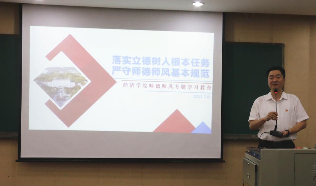 本网讯(通讯员 王彬)为全面加强新时代教师思想政治工作和师德师风建设,深入推进师德师风建设,适应新时代高校教师队伍建设相关要求,7月8日下午,经济学院在103教室召开了师德师风学习和警示教育大会。学院班子成员、全体教职工参加了大会。大会由学院党委书记戴则健主持。