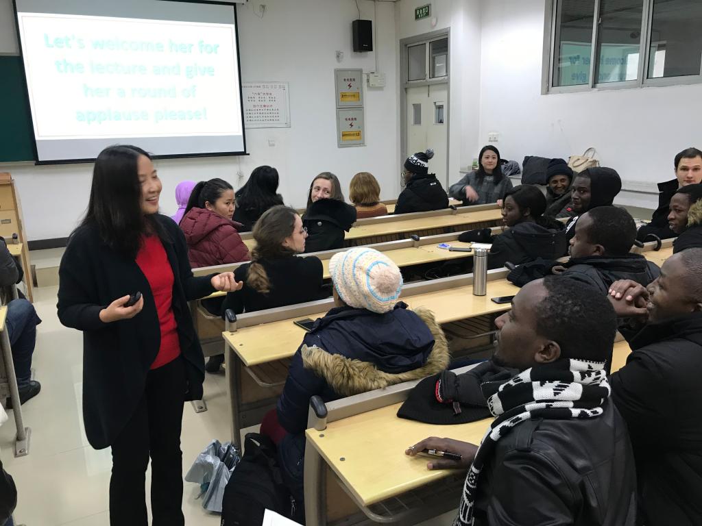 Ms. FANG Fang gives a lecture on “Chinese Language - the Power to Connect the World”.