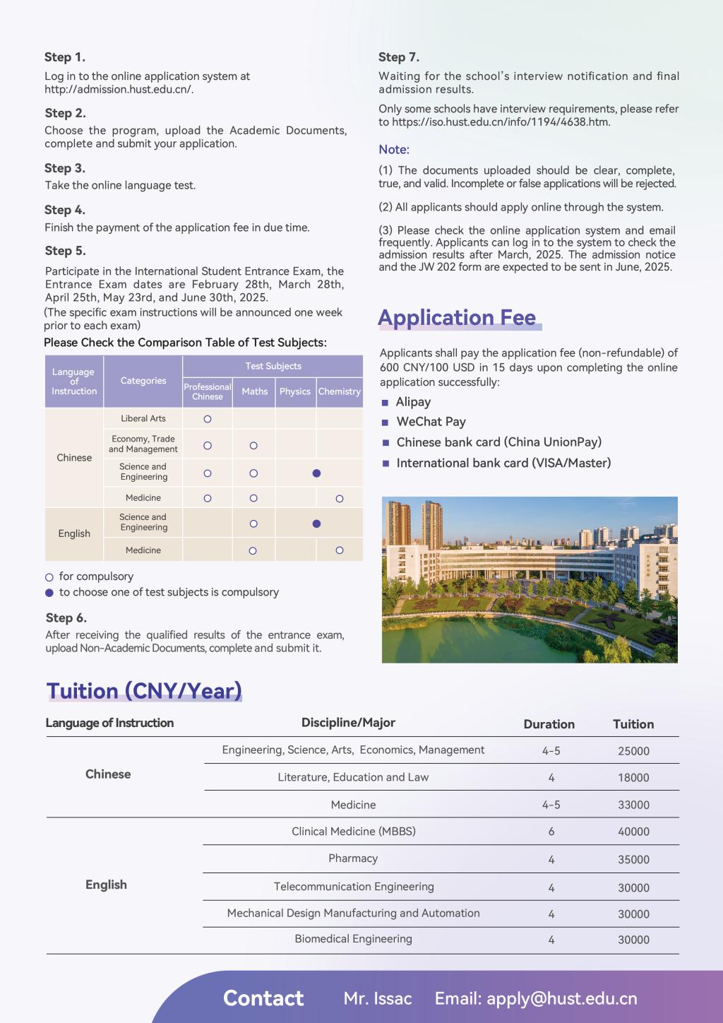 Email: apply@hust.edu.cn
