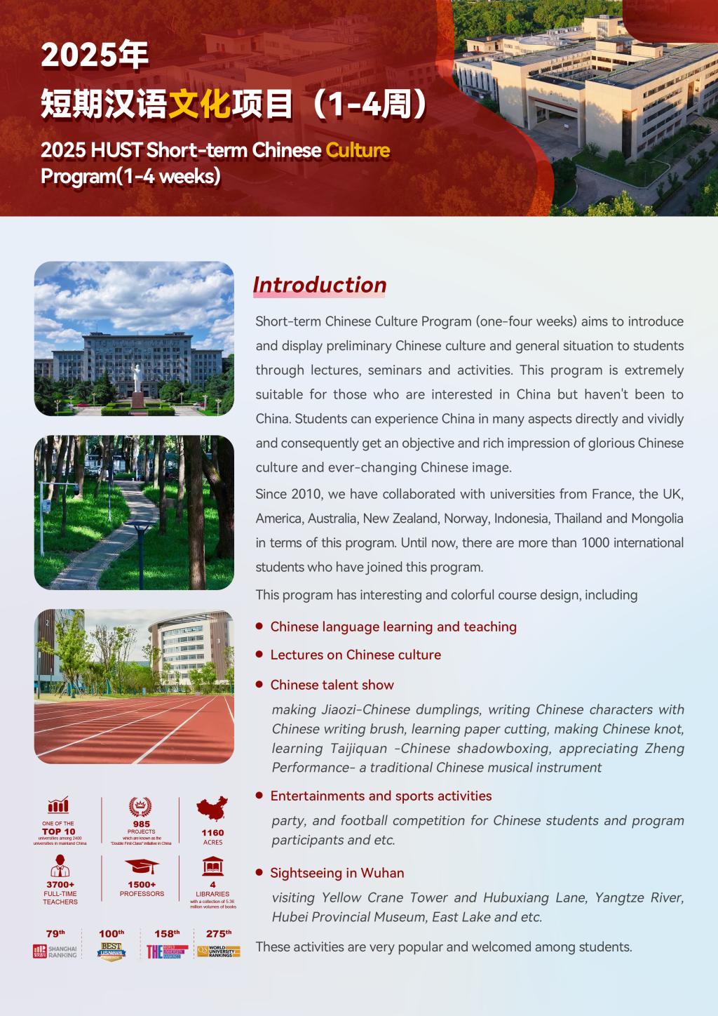 Application Guide for 2025 HUST Short-term Chinese Culture Program (1-4 weeks)