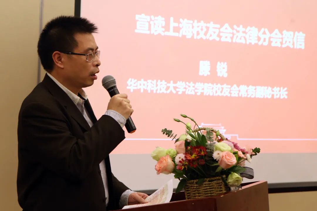 法学院校友会常务副秘书长滕锐宣读上海校友会法律分会贺信。