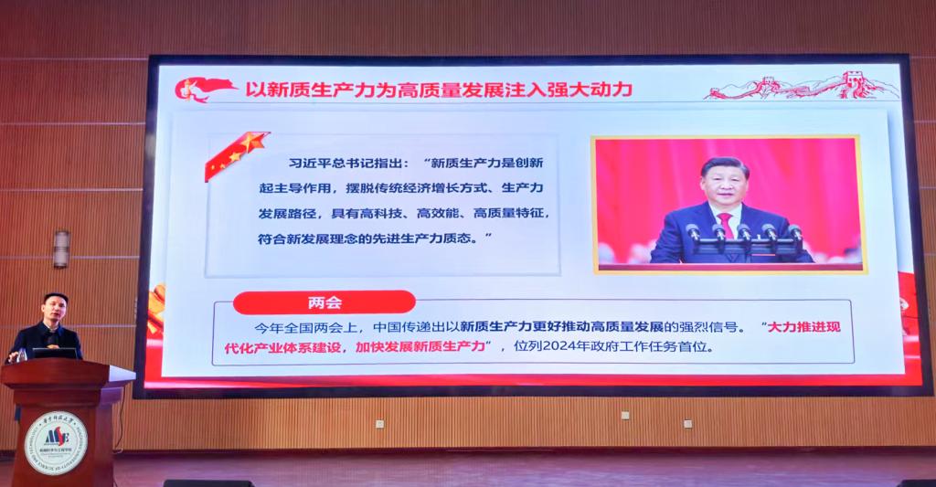 为深入学习贯彻习近平新时代中国特色社会主义思想和习近平总书记重要讲话精神,12月19日,我院副院长陶波在学术报告厅讲授“新质生产力+制造——新质生产力变革传统制造业态”专题党课。我院7个硕、博士生党支部,共200余名党员参加学习。