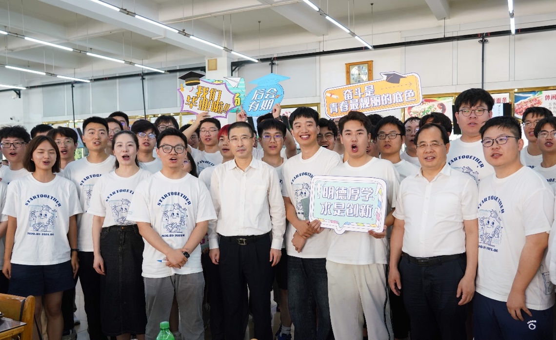 用餐期间,张广军、尤政来到同学们身边,亲切交谈、签字、合影,举杯祝贺大家毕业快乐、前程似锦。