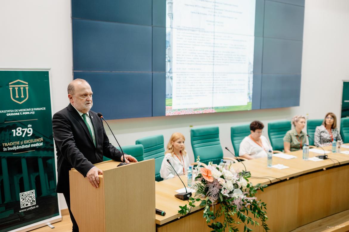 雅西医药大学校长Viorel Scripcariu教授为开幕式致辞。他指出,中医药在现代医学体系中具有重要价值和广泛应用,与西医一起维系着人类的健康。雅西医药大学一直高度重视中医学科建设,希望本次大会能加强学者们的学术交流与科研合作,提升中医药在罗马尼亚乃至欧洲的发展水平,为民众健康福祉做出更大贡献。罗马尼亚中医协会主席Angela Tudor教授发表题为《将中医融入罗马尼亚医疗体系》的主旨演讲,她指出罗马尼亚中医协会自2012年成立以来,不断发展壮大,从业人员及诊所不断增多,中医协会在中医药教育科研、中医文化推广、中医人才培训等领域都开展了大量工作并与中国广泛合作,中医药在罗马尼亚还有巨大潜力和发展空间。