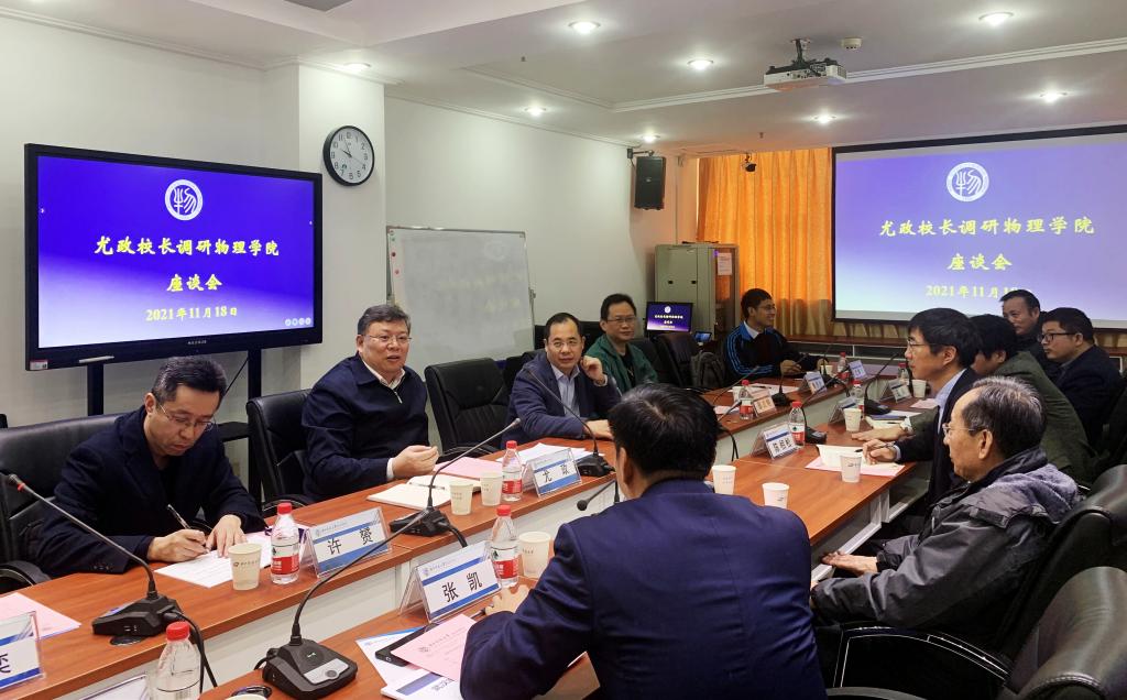 11月18日上午,校长尤政带队到物理学院开展调研座谈。物理学院教授、中科院院士叶朝辉,党委书记张凯,院长陈相松及其他班子成员,学院各研究方向学术带头人,二级单位负责人,教工党支部书记参加座谈活动。座谈会由张凯主持。