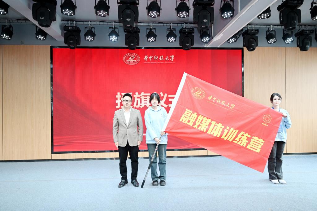 人文学院2023级研究生尚雯作为营员代表发言,表示将与同学们一起积极参与训练营课程,提升“强于理论,敢于实践,提笔能写,张口能讲”的综合素质,为更好地讲述华科大故事而努力。随后,研工办马胤任老师为训练营授旗。