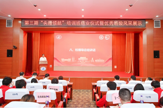 张耀在总结讲话中指出,学校举办“头雁领航”培训班,是在学生群体中深入学习贯彻党的二十大精神、深化“新时代党旗领航工程”的重要举措。他希望学员们要做信念坚定的领头雁,自觉承担起“头雁”的责任,带动更多的青年学生听党话、跟党走;做团结协作的领头雁,学会“有组织”地合作行动、集智攻关,在共同面对亟需破解的难题时“握指成拳、协同作战”;做服务群众的领头雁,以优秀的言行、乐于奉献的品行和敢于担当的作风成为“头雁”榜样。他勉励学员们把时代重任放在心里、扛在肩上,许党报国、团结实干,为全面建成社会主义现代化强国贡献力量。