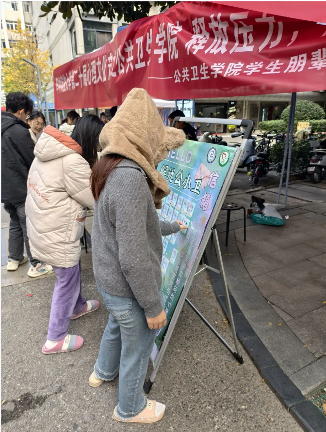 第二十届心理文化节之公共卫生学院:释放压力,“戳破”烦恼活动,帮助参与同学学习科学的解压与驱散烦恼的方法,提升情绪自我调节能力,促进心理健康,构建和谐的人际关系,更好地认识自己、调整心态。